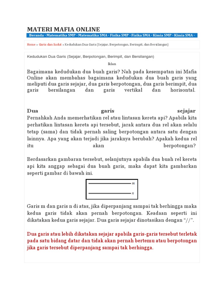 Pengertian Garis Dan Hubungan Antar Garis Mikirbae Com